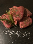 Kotelettes vom Junghirschrücken mariniert m. Olivenöl & Rosmarin