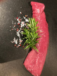 Minutensteakerl vom Hirsch (Keule) an Rosmarinmarinade